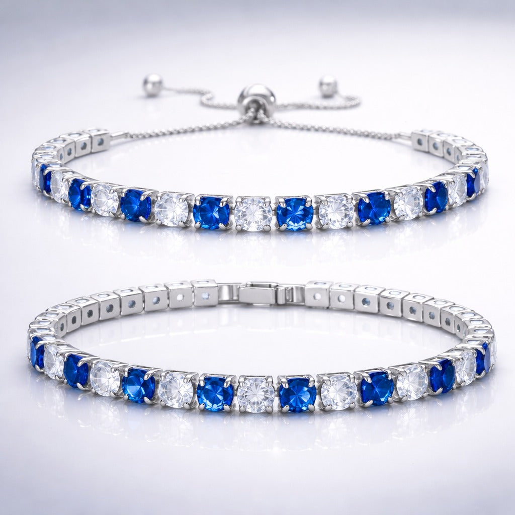 Eleva tu estilo con la pieza definitiva de nuestra colección. Un brazalete tipo Tennis que combina la profundidad del zafiro azul con el brillo eterno de los diamantes.