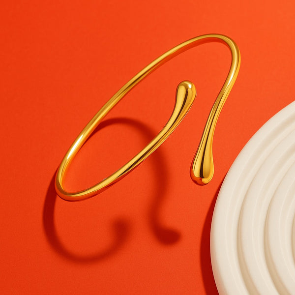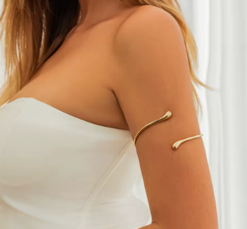 Luce el toque de lujo que transforma cualquier look. Este brazalete dorado, con un diseño fluido y moderno, abraza delicadamente tu brazo con una elegancia única. Su acabado pulido refleja la luz de forma sutil, aportando un brillo sofisticado que no pasa desapercibido.